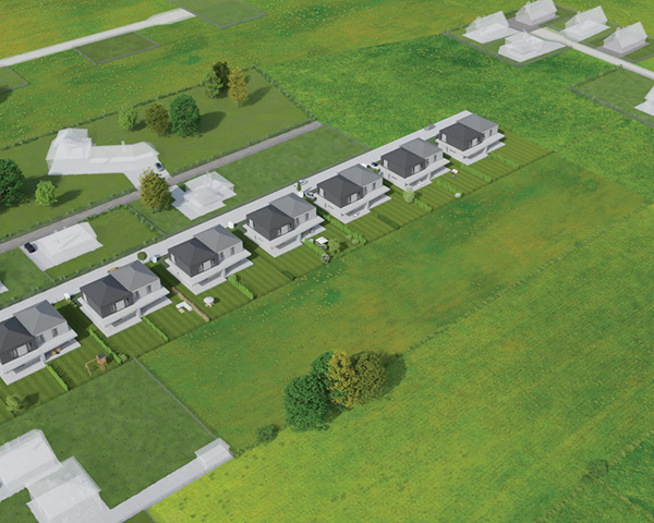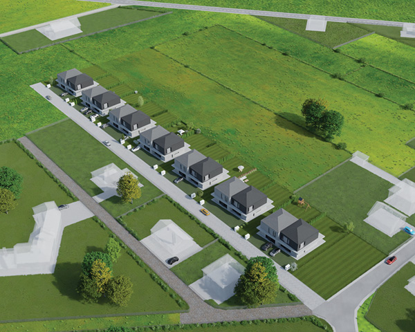 Kameralne osiedle domów w zabudowie bliźniaczej w Mysłowicach zostało zaprojektowane w zgodzie z sąsiadującą zabudową oraz z myślą o jego przyszłych użytkownikach.